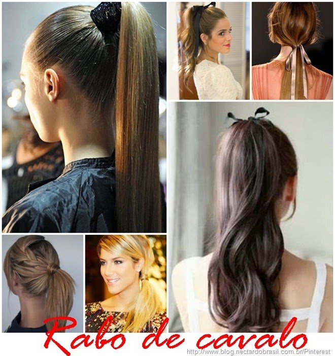 Cabelo solto, coques, baixo, coque alto, trança fácil, bagunçada, cabelo de lado, e rabo de cavalo.